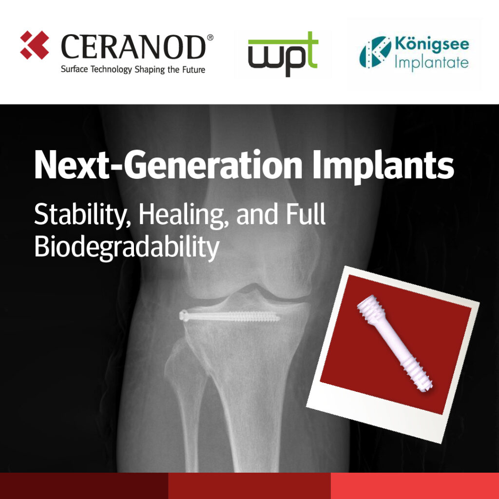We are pleased to announce that in December 2024, the MagImp project—in collaboration with Königsee Implantate, the Chair of Materials Test Engineering (WPT) at TU Dortmund, and with the support of the Federal Ministry for Economic Affairs and Climate Action (BMWK)— achieved a breakthrough in the development of bioresorbable magnesium implants. These implants are engineered to resorb in accordance with the bone healing process, thereby eliminating the need for a secondary procedure and significantly reducing complications.